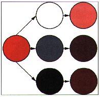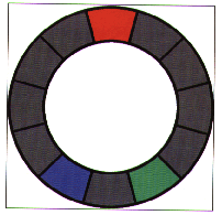 TriadicA triadic color scheme uses three different colors evenly spaced around the color wheel. One of the most effective is to use the three primary colors, red, green, and blue. Other triads are possible, but have less impact visually. These schemes introduce stability because each leg of the triad balances the other two. There is also a simple relationship between the colors which can lend itself to very dynamic looks. This simplicity can also be garish if not well done. |